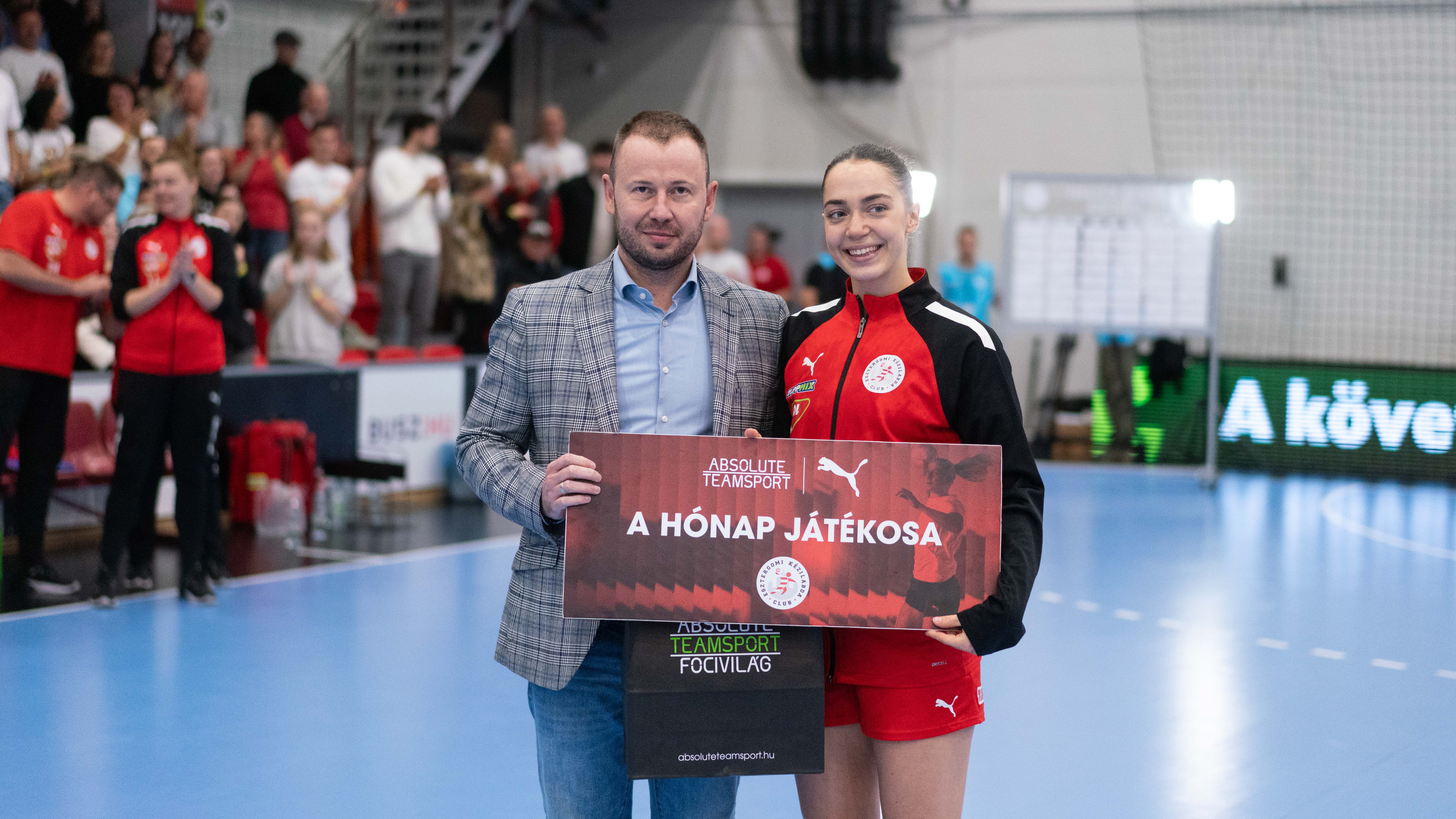 Gratulálunk neki a remek teljesítményhez, és további sikereket kívánunk a szezonban! A díjat átadta Ligeti András az Esztergomi Kézilabda Club ügyvezetője.