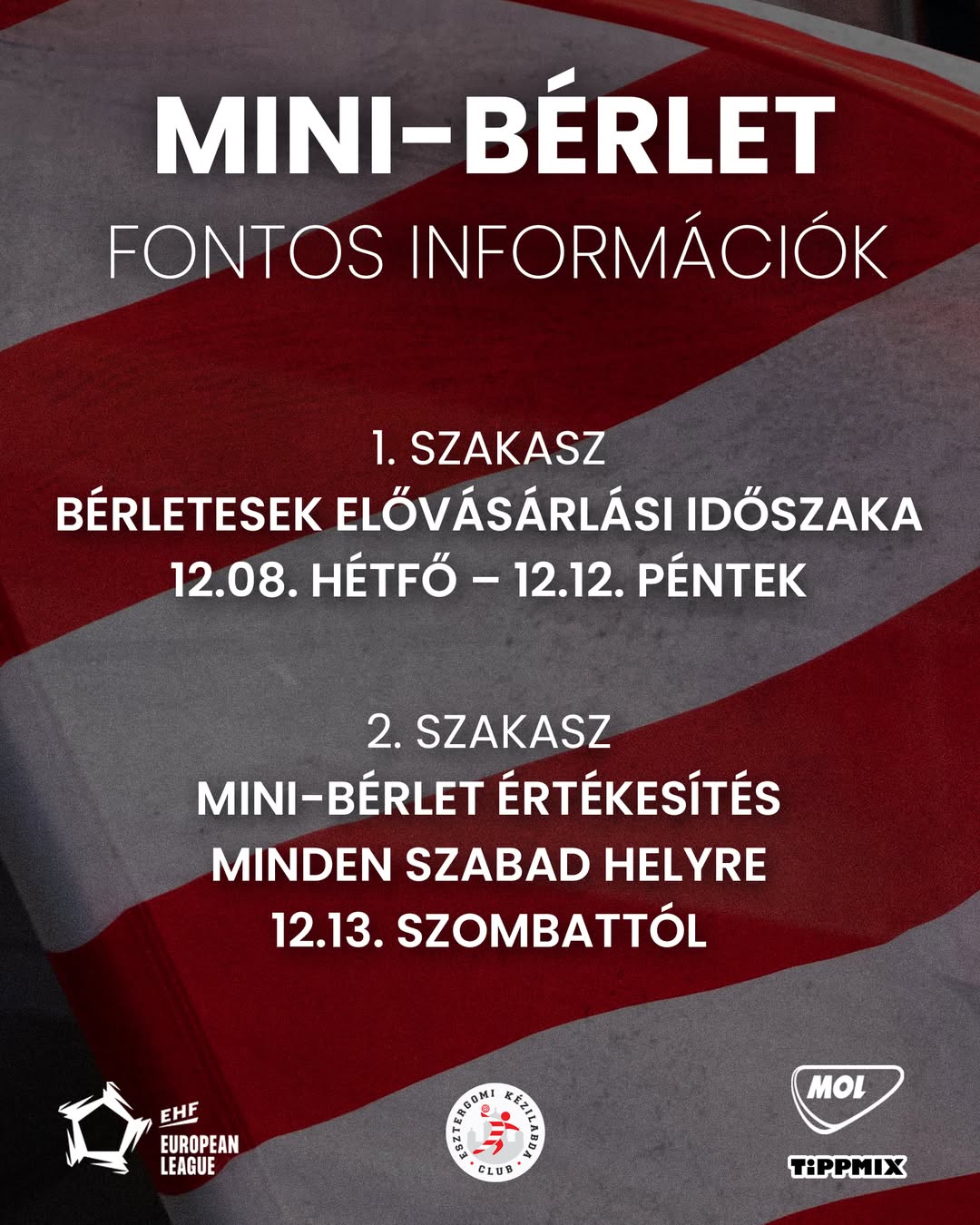Ezért javasoljuk, hogy mindenki mini-bérlettel biztosítsa a helyét a teljes EL-csoportkörre.