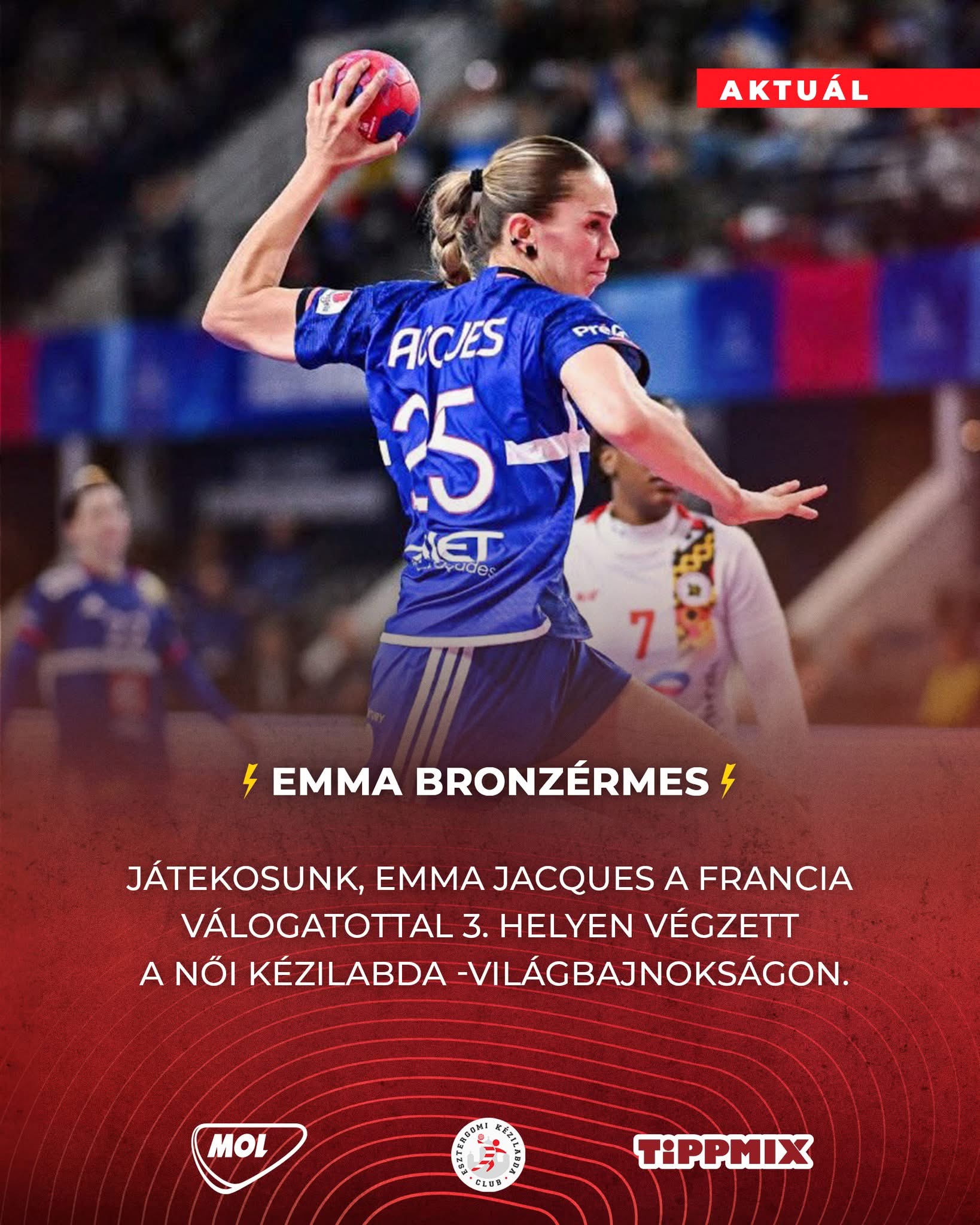 Büszkék vagyunk játékosunkra, Emma Jacques-ra, aki a női kézilabda-világbajnokságon fantasztikus teljesítménnyel a 3. helyen végzett a francia válogatottal!
